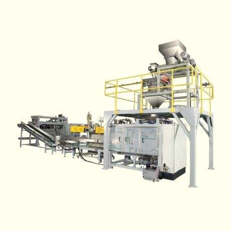 全自動(dòng)(粉料)給袋包裝系統(tǒng)主要針對(duì)化工、食品等行業(yè)而研制的新型包裝機(jī)組。該機(jī)組具有自動(dòng)供袋、上袋、稱量、填充、封口等功能??砂b物料如顏料、面粉等粉狀、超細(xì)粉料。